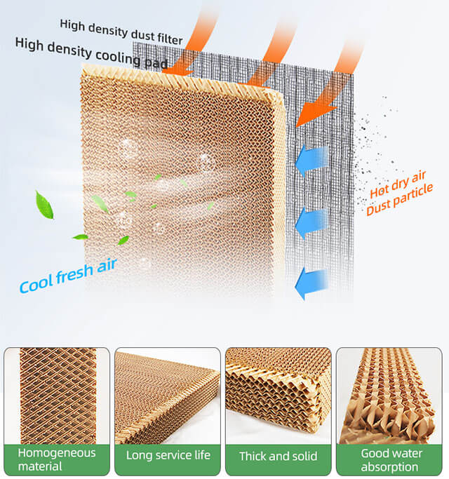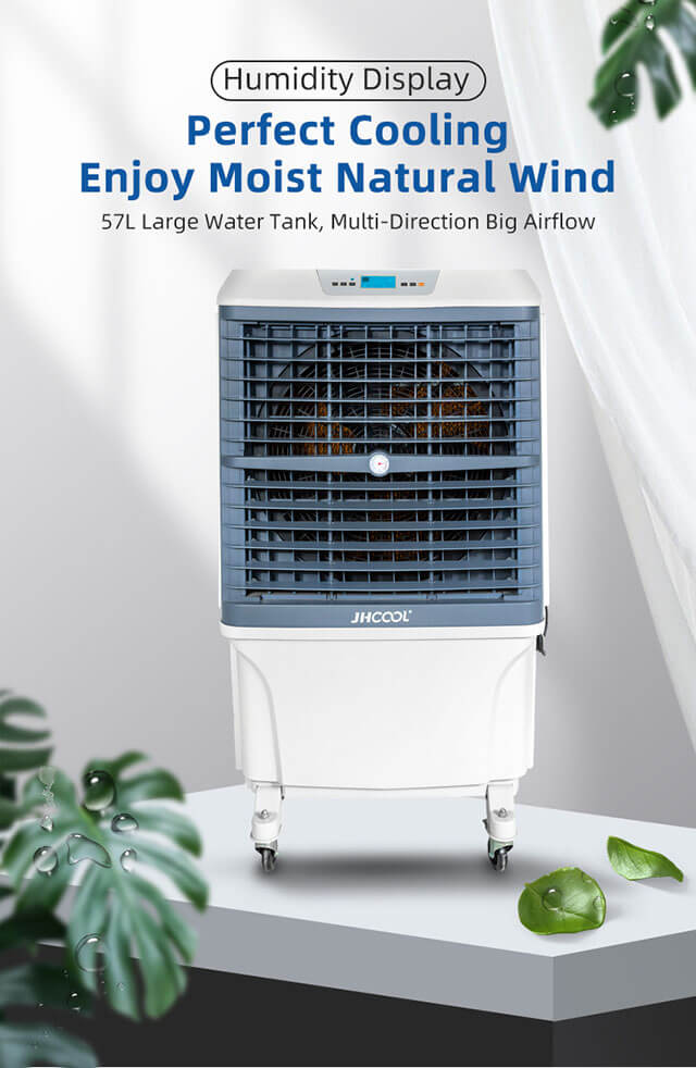 JH Evaporative coolers use "evaporative cooling" of this natural phenomenon, combining high technology and artificial evaporative cooling technology to develop a new generation of scientific and technological innovation. Generated a negative pressure air into the room by the fan, the outdoor air flows through the soaking wet Lianhou, full contact of air and water while absorbing heat in the air, to achieve the purpose of cooling, ventilation, dust, increasing the fresh air. Especially suitable for high temperatures and crowded occasions.